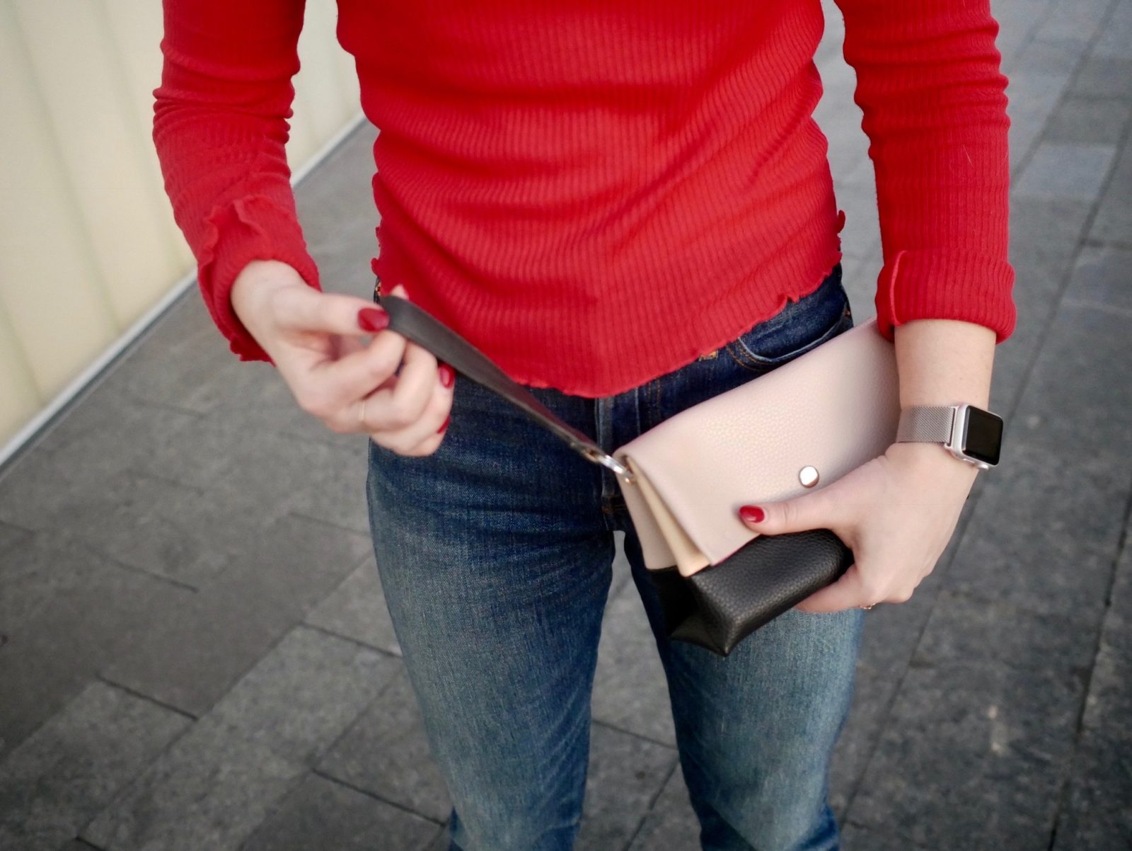 I rarely bring a small purse but this Spring, I’ve found my favourite small bag, because I’ve discovered a billion four ways to wear it. I bring two straps and a wristlet which I can swap for different looks and functions.